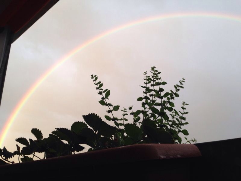 Zitronenmelisse und Erdbeeren unterm Regenbogen...